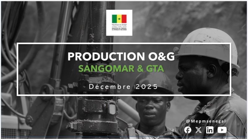 SANGOMAR : Au cours du mois de décembre 2025, trois cargaisons de pétrole brut ont été expédiées et commercialisées sur le marché international, pour un volume total de 2,94 millions de barils. Les projections initiales pour l’année 2025, estimées à 30,53 millions de barils, ont été révisées dès juin 2025 à la hausse à 34,7 millions, pour tenir compte de la bonne réponse des réservoirs, de la bonne tenue des puits et de la robustesse des performances opérationnelles. Les résultats finaux de production pour 2025 sont estimés à 36,1 millions de barils de pétrole brut, démontrant l’efficacité des opérations.
