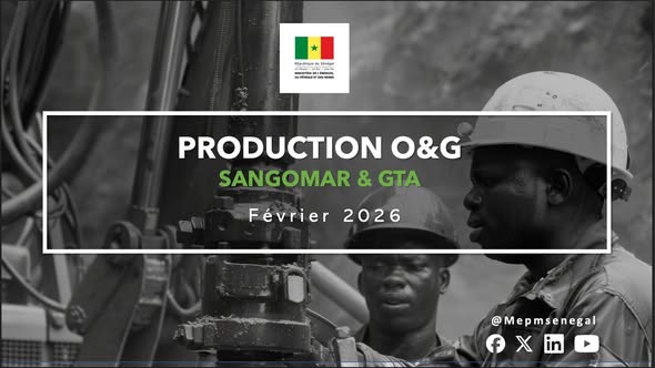 SANGOMAR: Au cours du mois de février 2026, trois cargaisons de pétrole brut ont été expédiées et commercialisées sur le marché international, pour un volume total de 2,9 millions de barils. Le plateau de production se poursuit attestant des bonnes performances du réservoir et des installations.