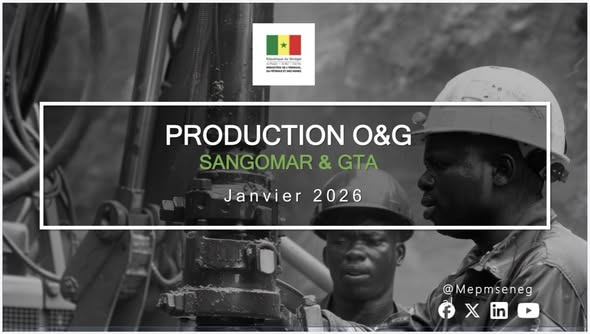 SANGOMAR: Au cours du mois de janvier 2026, quatre cargaisons de pétrole brut ont été expédiées et commercialisées sur le marché international, pour un volume total de 3,8 millions de barils. Le plateau de production se poursuit attestant des bonnes performances du réservoir et des installations.
